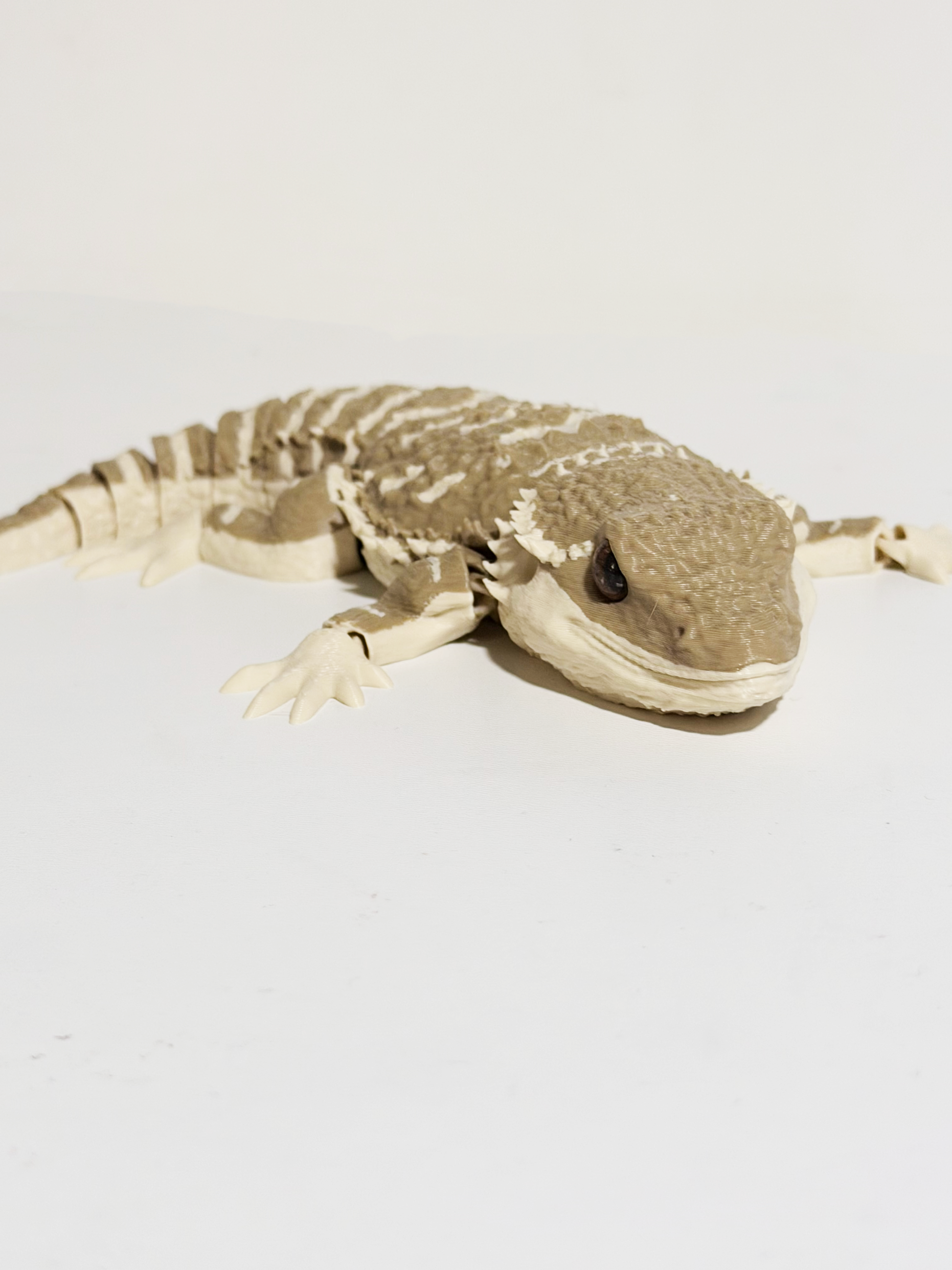 Bring personality and charm to your collection with this 3D Printed Articulated Bearded Dragon. Designed with detailed texture and natural body shape, this figure captures the look of a real bearded dragon—complete with a flexible, bendable body that allows movement and posing.